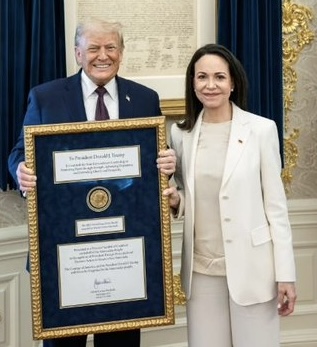 | … | 226/01/16(金)14:05:33No.1392950366+授賞理由:ベネズエラの民主的権利を向上させるための不断の努力と独裁政権から民主主義への公正かつ平和的な移行を達成するための闘争に対して |