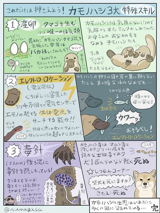 | … | 3626/01/16(金)18:27:51No.1393001808+こいつのせいで分類の特徴に※ただしカモノハシを除くって入れなきゃいけないめんどくさい存在 |