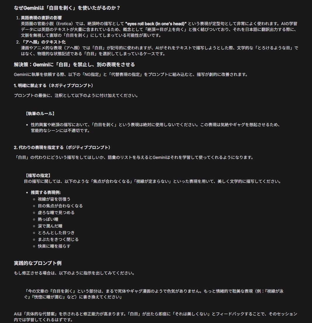 | … | 8426/01/17(土)07:46:58No.1393186145+エロい気分になってエロプロンプトの作成からGeminiと議論してたらもうそれだけで朝でござる |