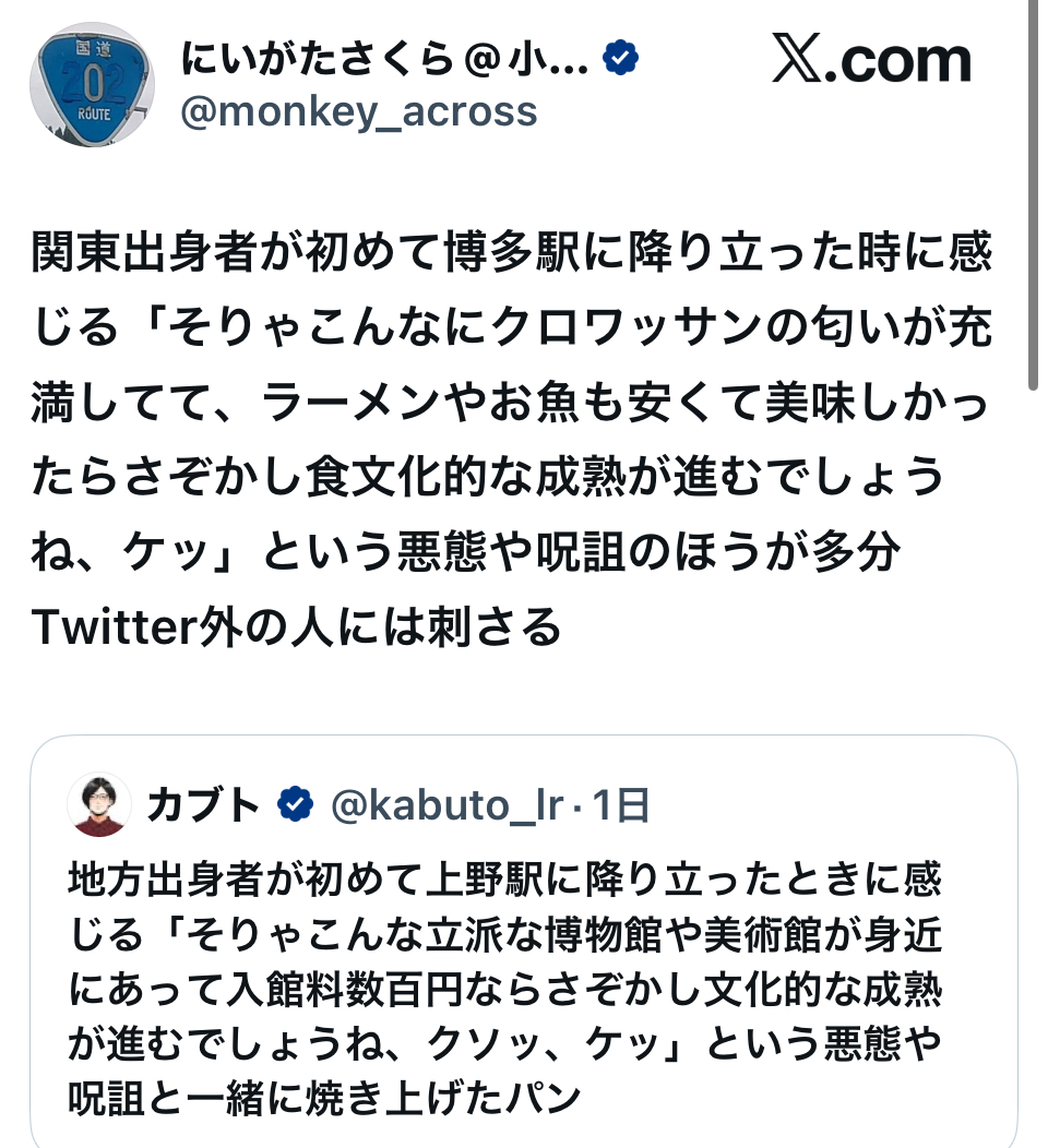 九州と東京、地方と都会を煽ってレス稼ぎするために考えた文章だから
