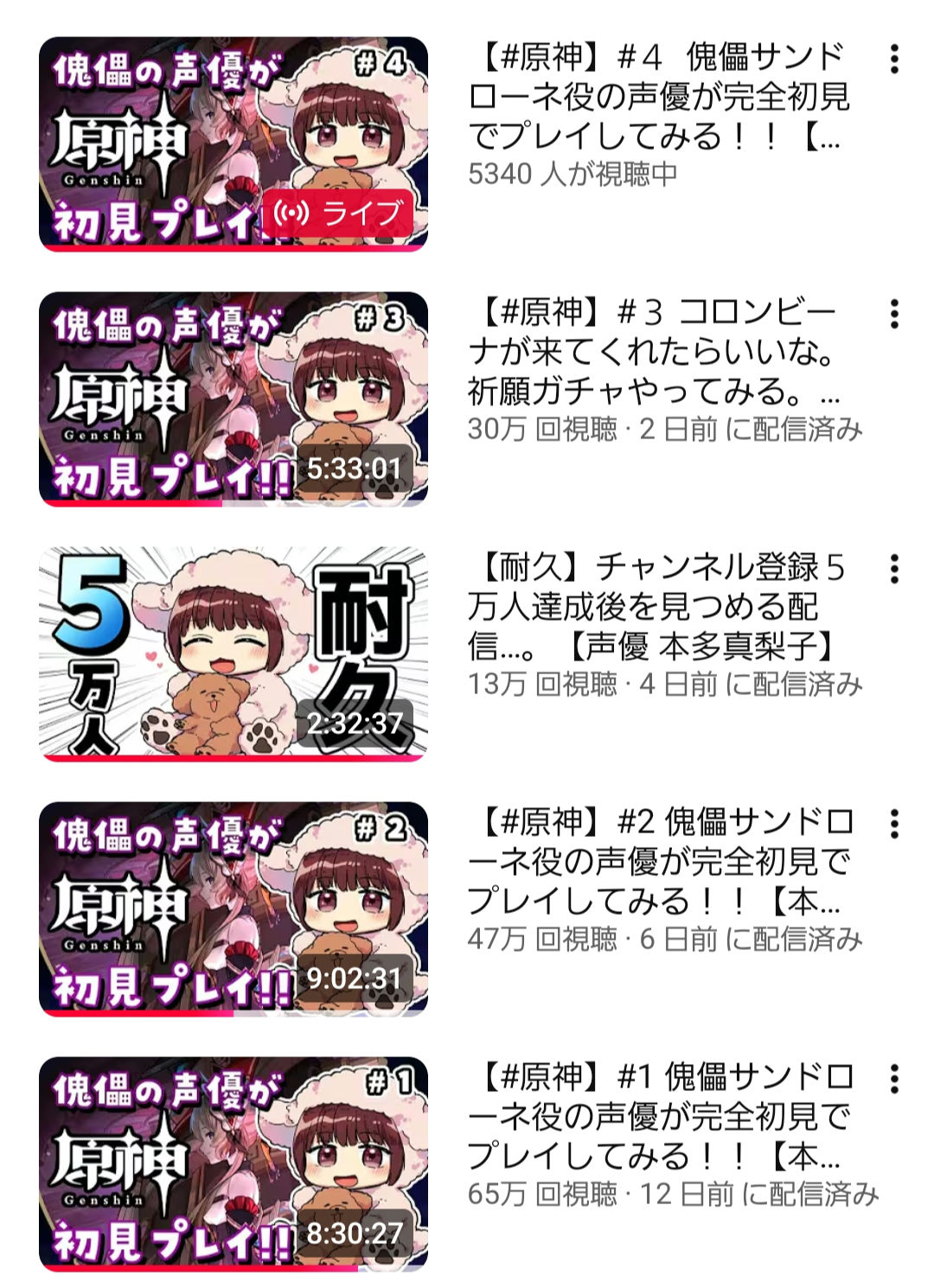 本田真梨子の実に原神ね 配信中ですぜぇ