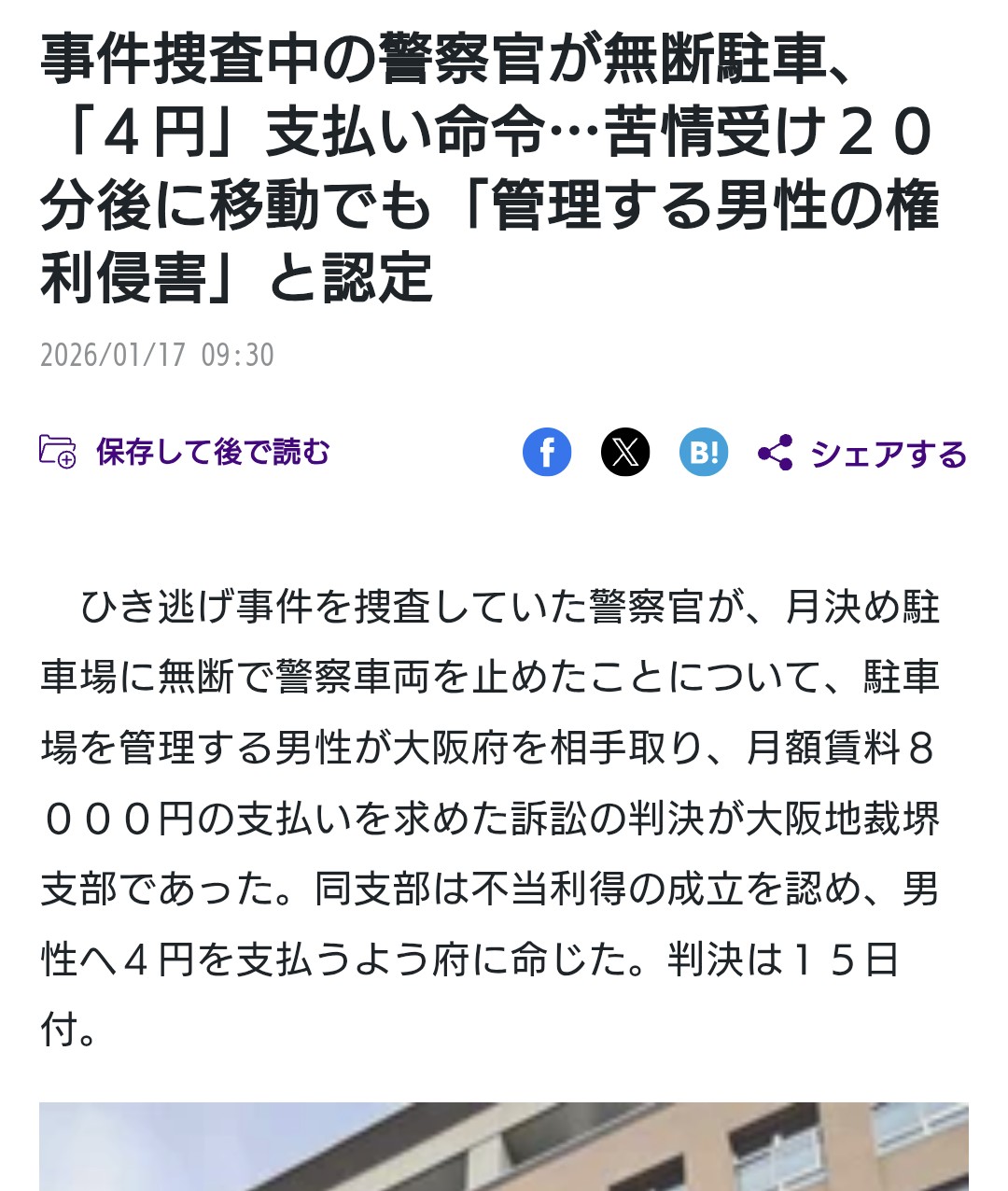 | … | 926/01/17(土)17:01:12No.1393318334そうだねx46これさあ逆に月極分の日割り・時間割計算分の金額さえ払っちゃえばお咎めなしって前例になっちゃわない? |