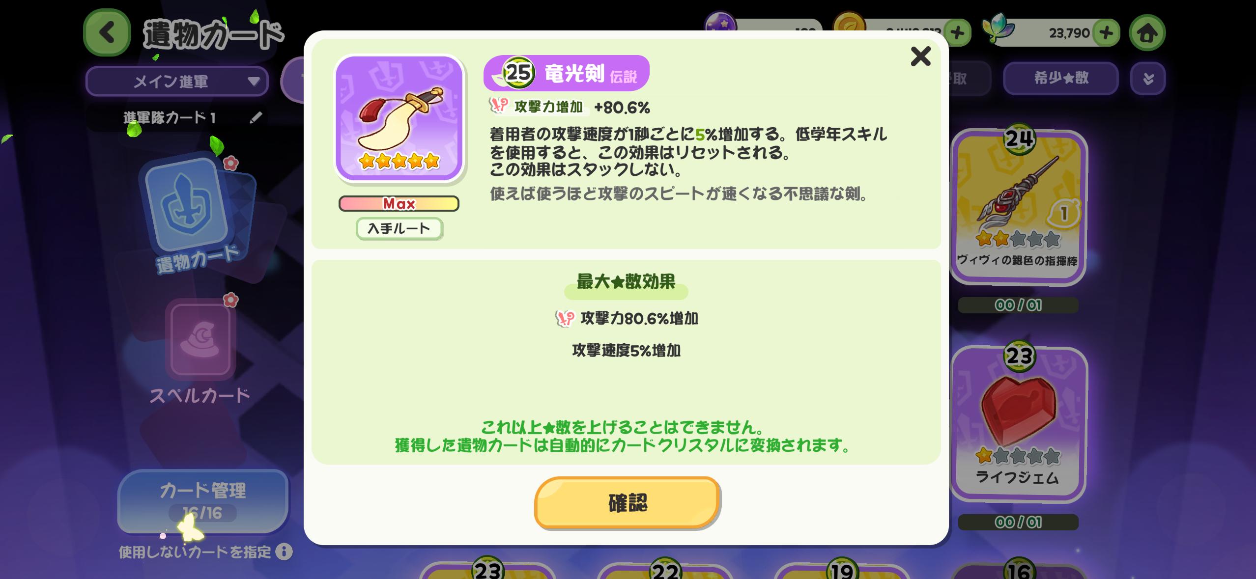 | … | 36426/01/17(土)21:37:39 ID:IAPmLvQ6No.1393419124+fu6178741.jpg 流光剣は1凸ごとに10%強くなるにゃん 5凸で80%上昇+5%加速にゃん |