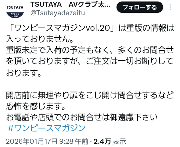| … | 726/01/17(土)22:28:54No.1393440247+転売屋じゃないの |