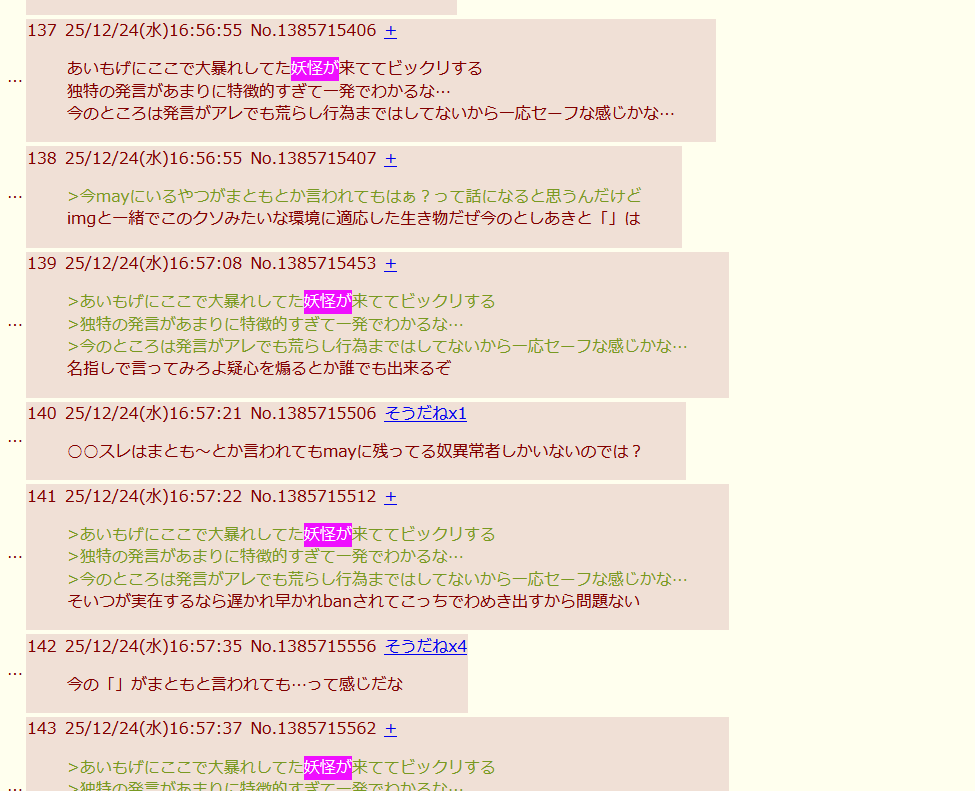 | … | 40026/01/18(日)00:37:34No.1393487465+なんか同じスレから1レスだけ引用して無関係なほかスレのコピペ書くのが消えて |