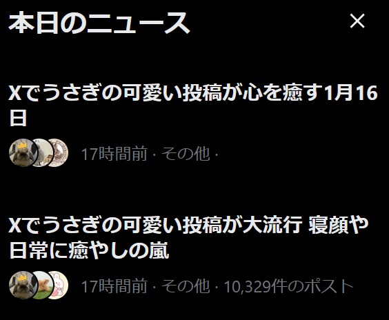 | … | 2626/01/17(土)23:47:45No.1393469504+>いや今日は世界的にうさぎのニュースしかなかった |