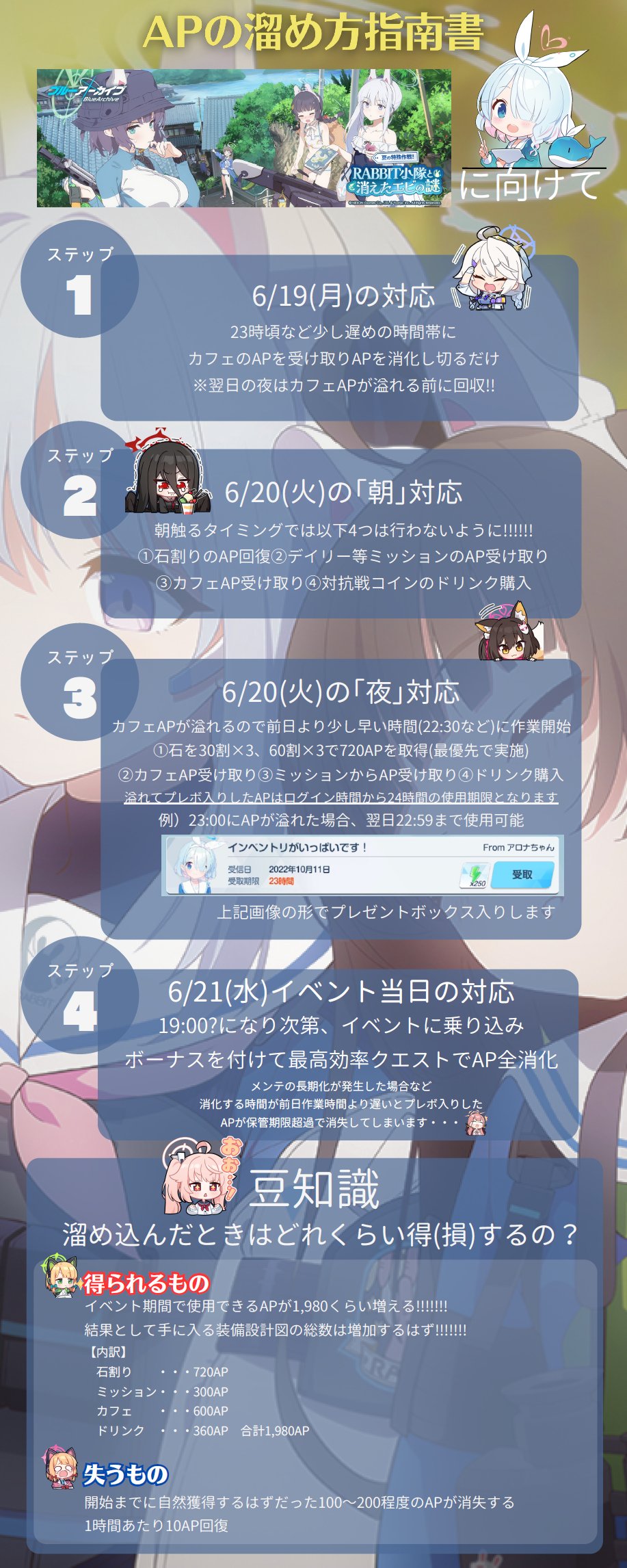 | … | 61326/01/18(日)03:35:57No.1393519680+>前のスレにあったAP貯蓄手順のこの画像ってラビ夏想定みたいだけどひょっとしてこの後AP全部消えたのかな…? |