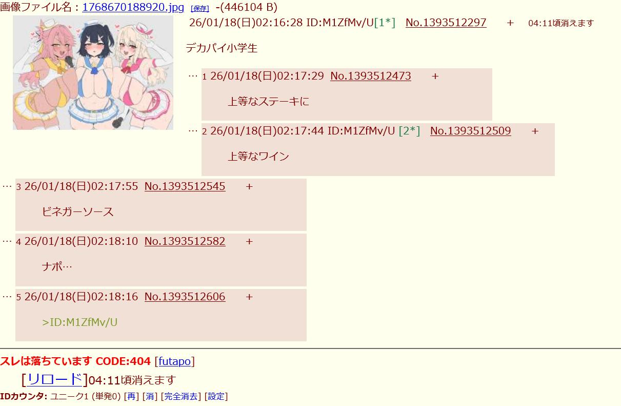 | … | 1026/01/18(日)00:58:38No.1393494455+中卒だろ |