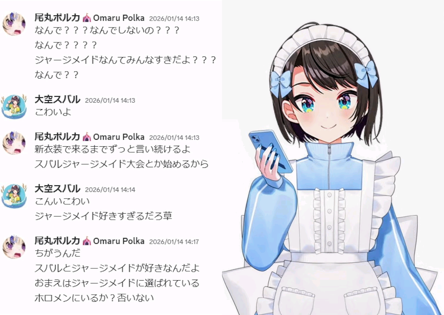 | … | 2026/01/18(日)07:37:54No.1393530093+大空スバルに着せたい衣装大会開いて審査員にしぐれうい呼んで優勝したら正式実装とか |