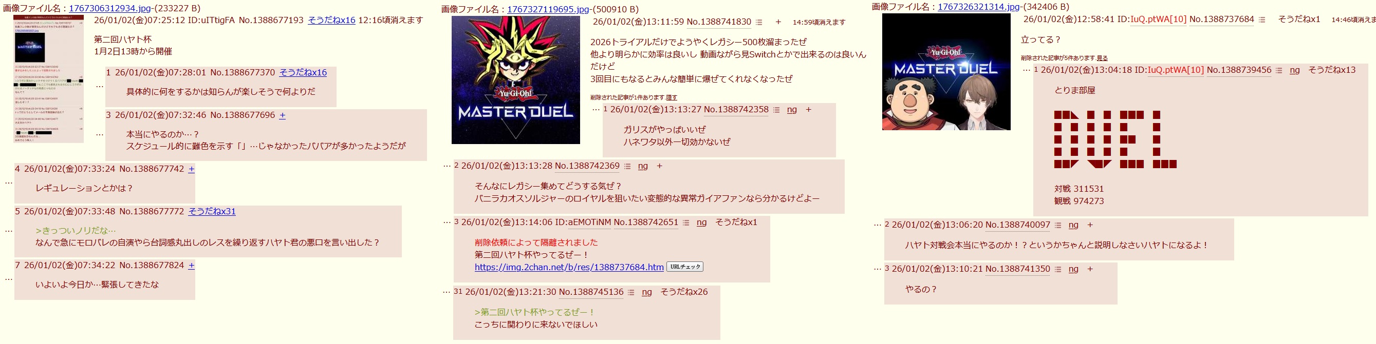 | … | 20226/01/18(日)15:38:12No.1393655891+>>ハヤト!(Fly High!) |