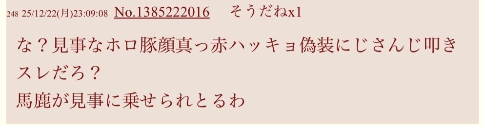 | … | 13026/01/18(日)15:04:47No.1393644007+>なんでこうにじアンチに都合のいい証拠ばかり出てくるんだよ |