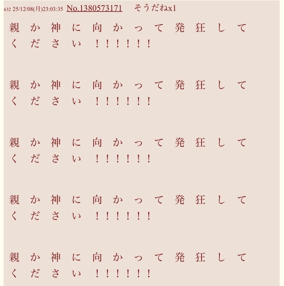 | … | 126/01/18(日)14:27:21No.1393633823そうだねx5このスレはスルーでお願いします |