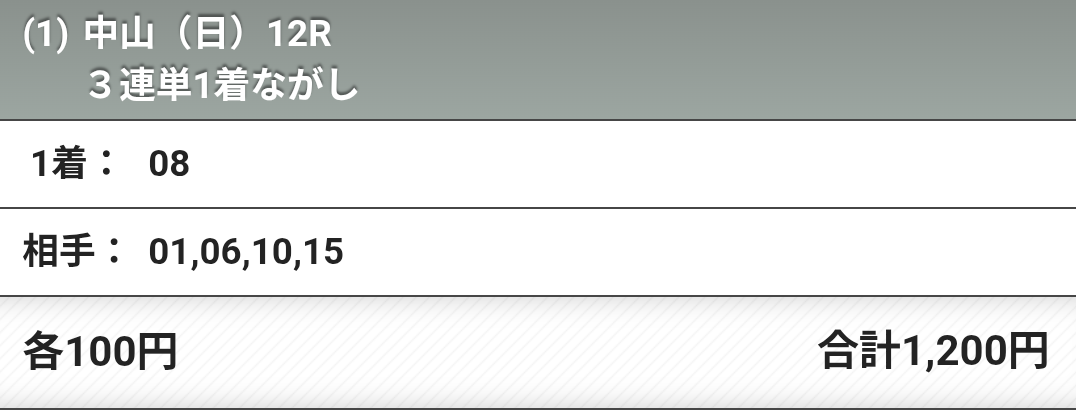 | … | 94526/01/18(日)16:27:24 ID:D1Rn7b7wNo.1393674436+馬連ボックス8,9,10,12,15です |