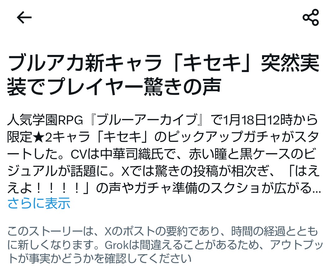 ブルアカに新キャラクター「キセキ」実装このスレは古いので、もうすぐ消えます。