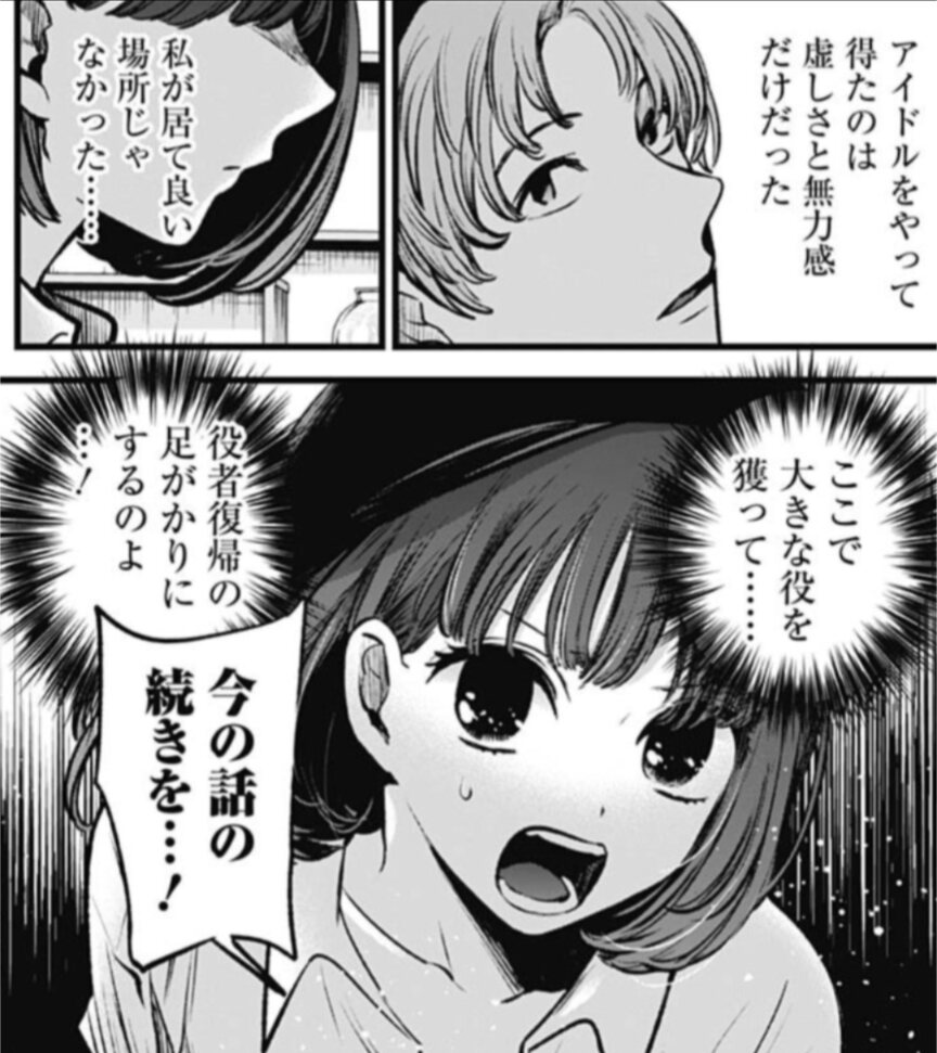 | … | 22126/01/18(日)20:32:36No.1393770363+>>この作品恋愛リアリティショーが面白かっただけっていうか黒川あかねが人気だっただけかもしれない… |