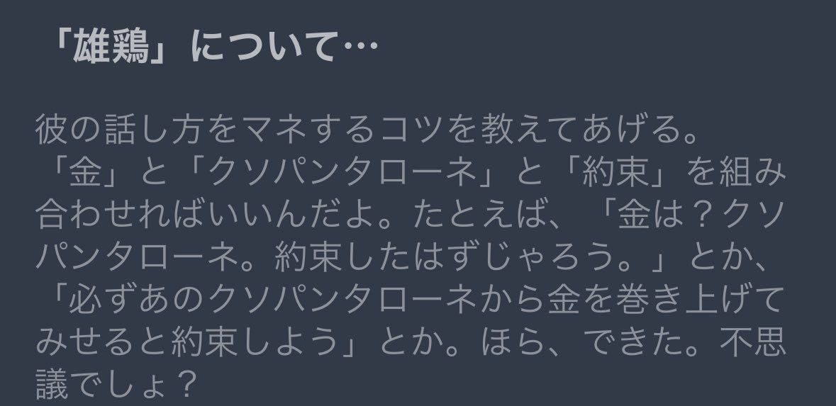 | … | 9726/01/19(月)00:58:26No.1393869003+サンドローネの実に滑稽ねって台詞 |