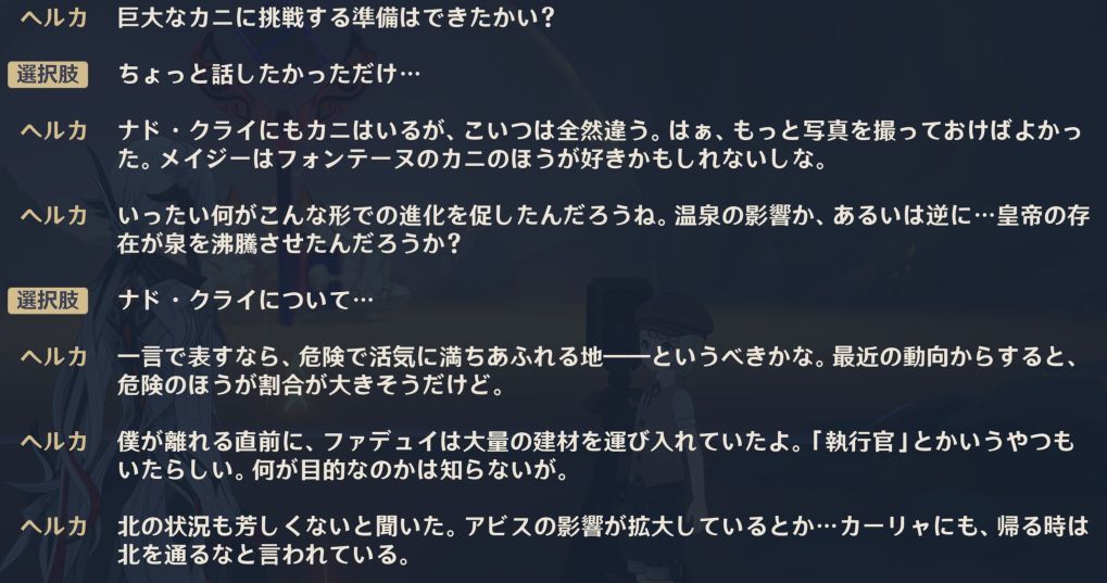 | … | 51726/01/19(月)02:25:29No.1393882316そうだねx1ナタのイベントでナドクライについて言及されてたよなぁって当時のスクショ漁ってきたけど今見るとこれあれのことかぁ〜!ってなったぜぇ |