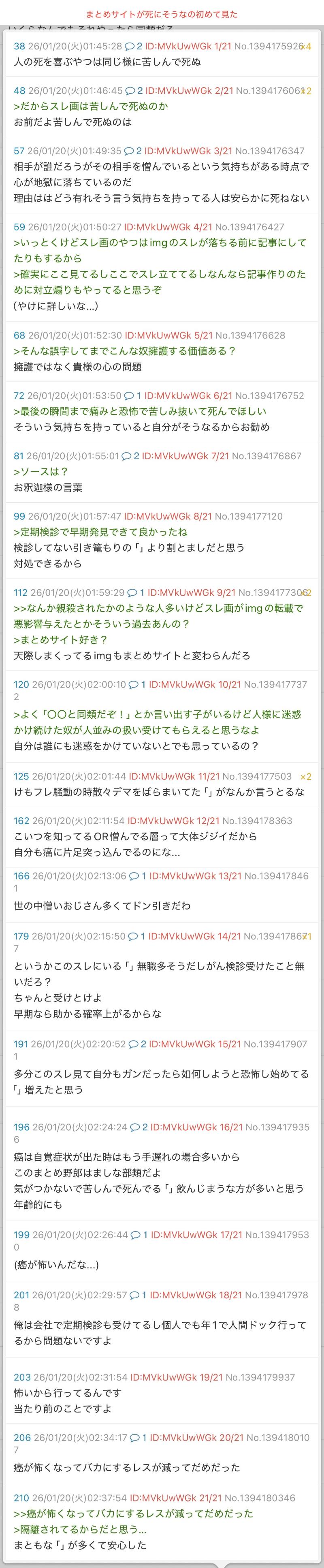 | … | 19326/01/20(火)02:22:17No.1394179186+>多分このスレ見て自分もガンだったら如何しようと恐怖し始めてる「」増えたと思う |