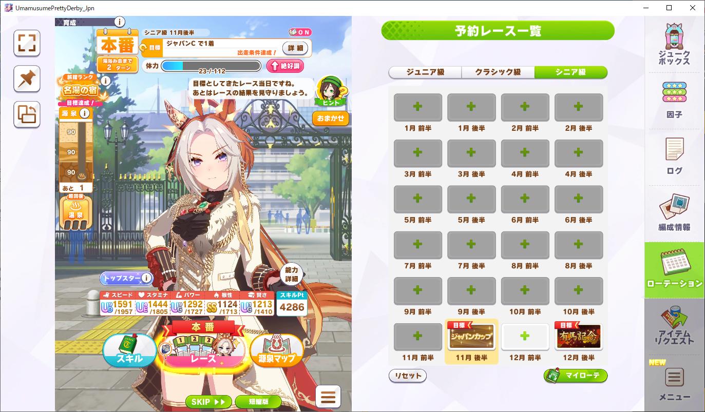 | … | 4626/01/20(火)00:21:30 ID:nBQFDzyENo.1394160591+すみません ジャパンカップのアイさんに 1700 1200 1500 1210 1201 でアイさん ステゴさん タマちゃん スピブルボンさん の金スキル全部付けてシナリオスキルに中距離コーナー◎とかにしても2バ身差とかで負けます 勝てた方いらっしゃいます? |