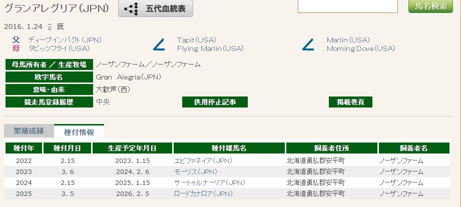 | … | 53126/01/20(火)12:39:17No.1394240627+繁殖牝馬はパート1G1馬2頭と重賞1頭が条件ですよね |