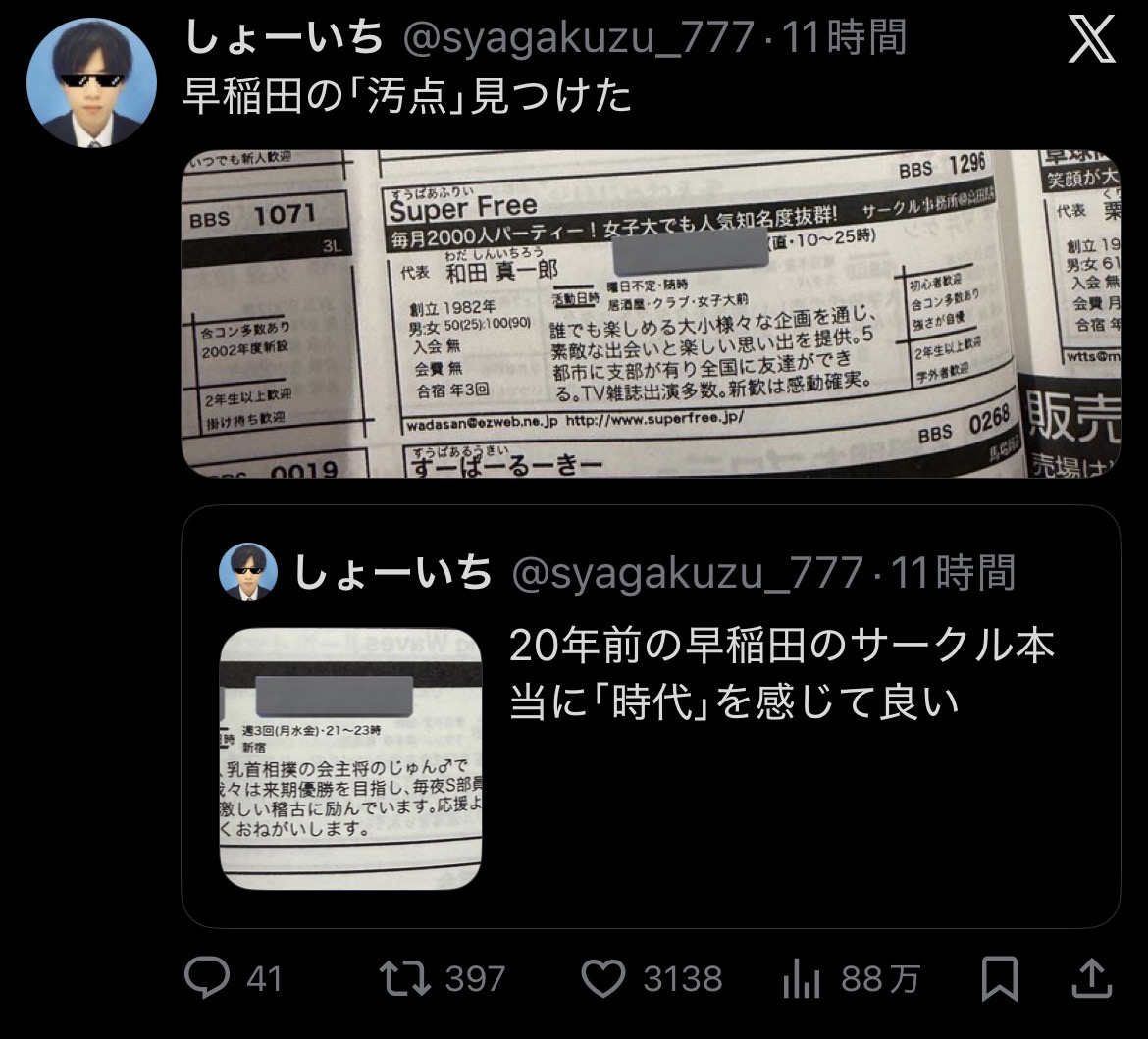 | … | 3826/01/20(火)12:02:52No.1394230712+スーパーフリー大学がいまだに名門扱いなのウケる |