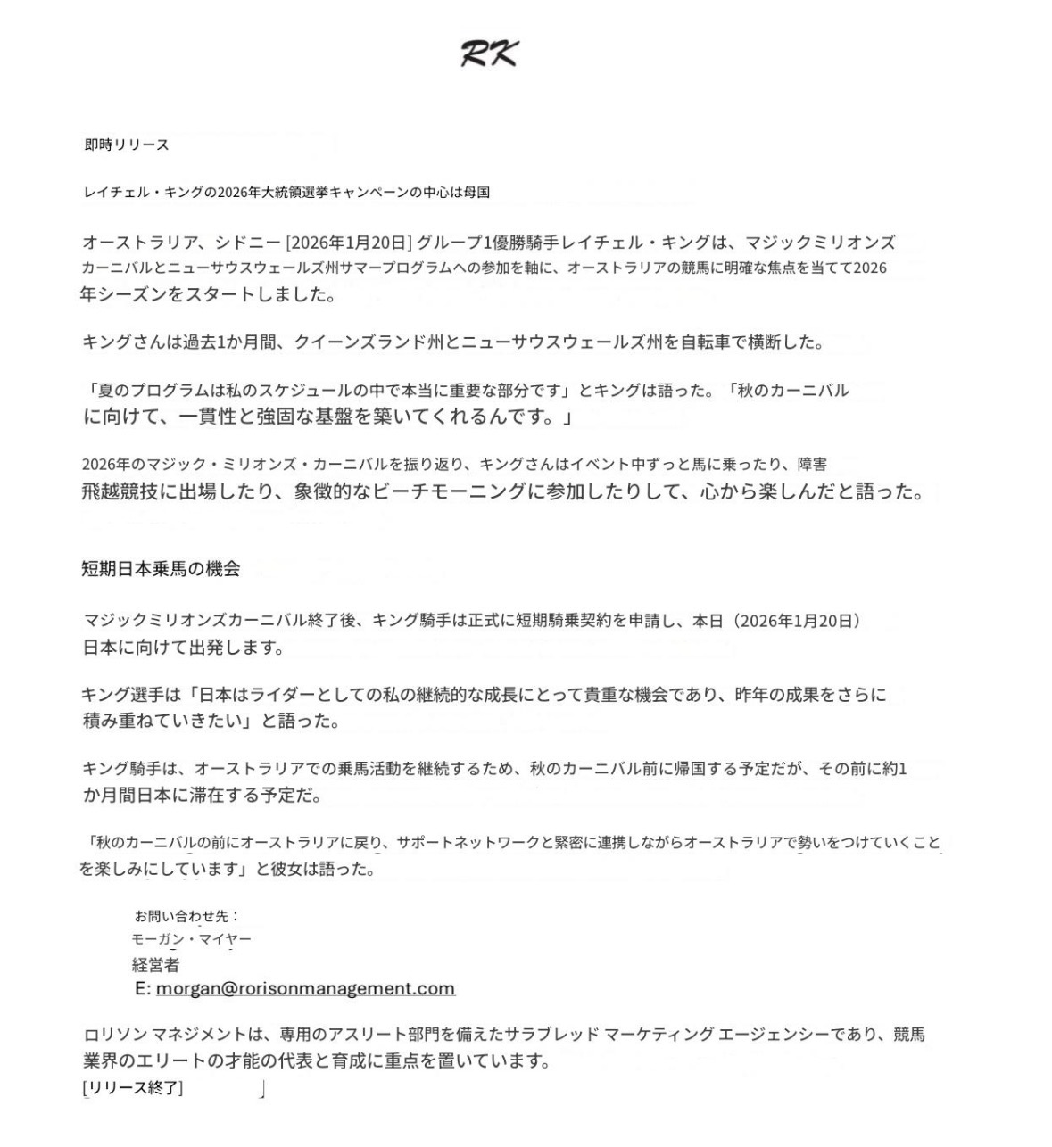 あの騎手が来日です