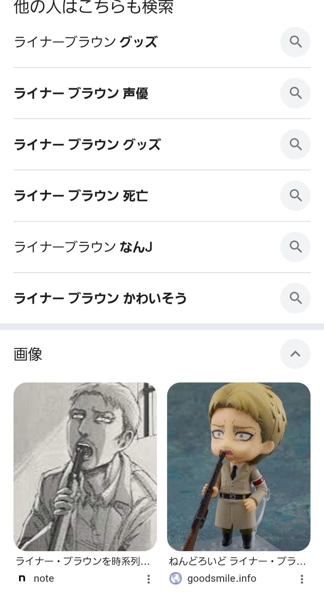 | … | 17626/01/20(火)16:11:02No.1394284569+進撃の巨人だけでなくNARUTOにも出演させられてるのどうなってるんだ |