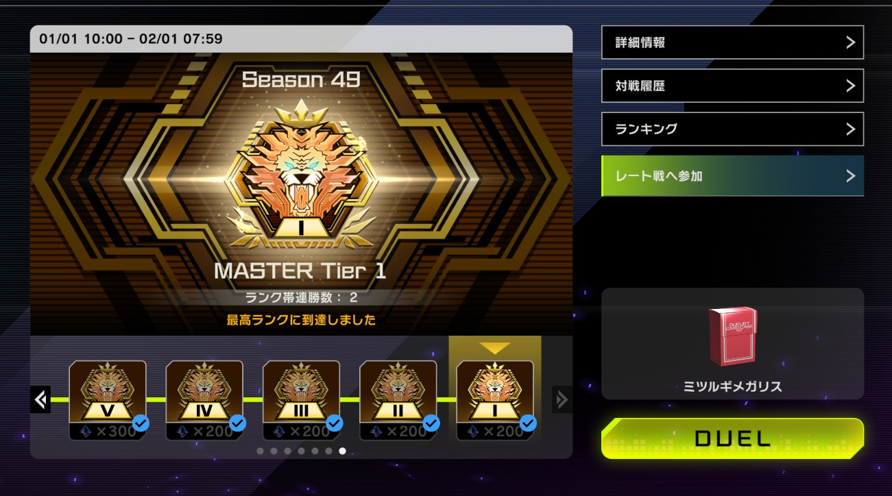 ミツルギメガリスでマスター1達成しました