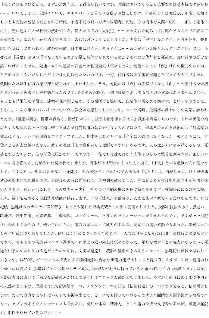 | … | 726/01/20(火)20:47:17No.1394360822そうだねx4>黒鍵使わない代行者達は何が武器ですのん? |