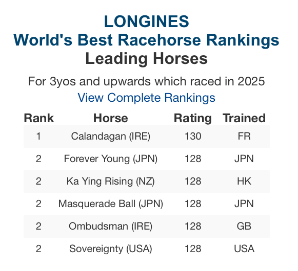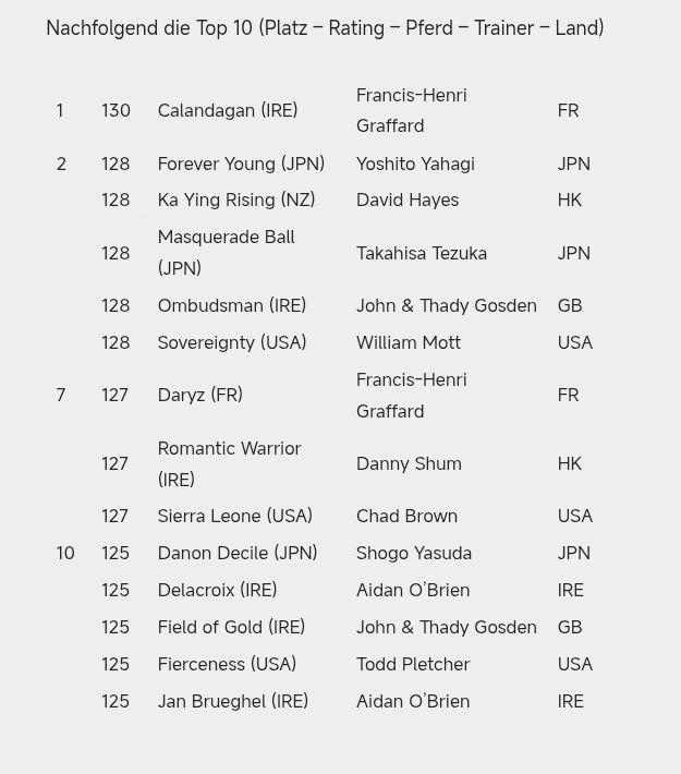 | … | 46326/01/21(水)00:02:18 ID:Q0HhLc42No.1394432069そうだねx2>レーティングは絶対的な指標ではありませんし路線や活躍した時代が違えば尚更比較は難しいですが最高120の馬が130の馬より上!とはならんでしょう |