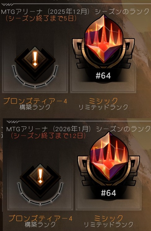 | … | 1826/01/21(水)01:12:59No.1394448872+新環境始まる前までにミシック上がれなかった… |