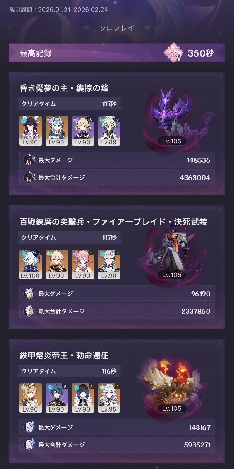 | … | 1226/01/21(水)13:36:33No.1394534076+カニに大苦戦したけどヌフリに爆発型綾人入れてなんとかエクストラクリアできたぜぇ |