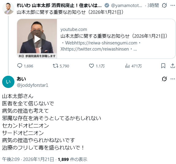 | … | 4926/01/21(水)14:30:13No.1394544699そうだねx31>れいわ崩壊するのでは…? |