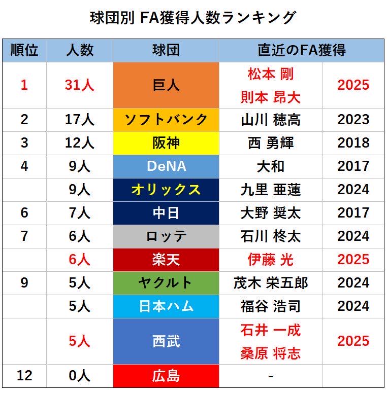 | … | 1926/01/21(水)14:56:40 ID:YjhHe3m2No.1394549602そうだねx3>🦊も毎年FA取ってるのに強奪扱いされずに綺麗な補強ってことになってるの許せない |