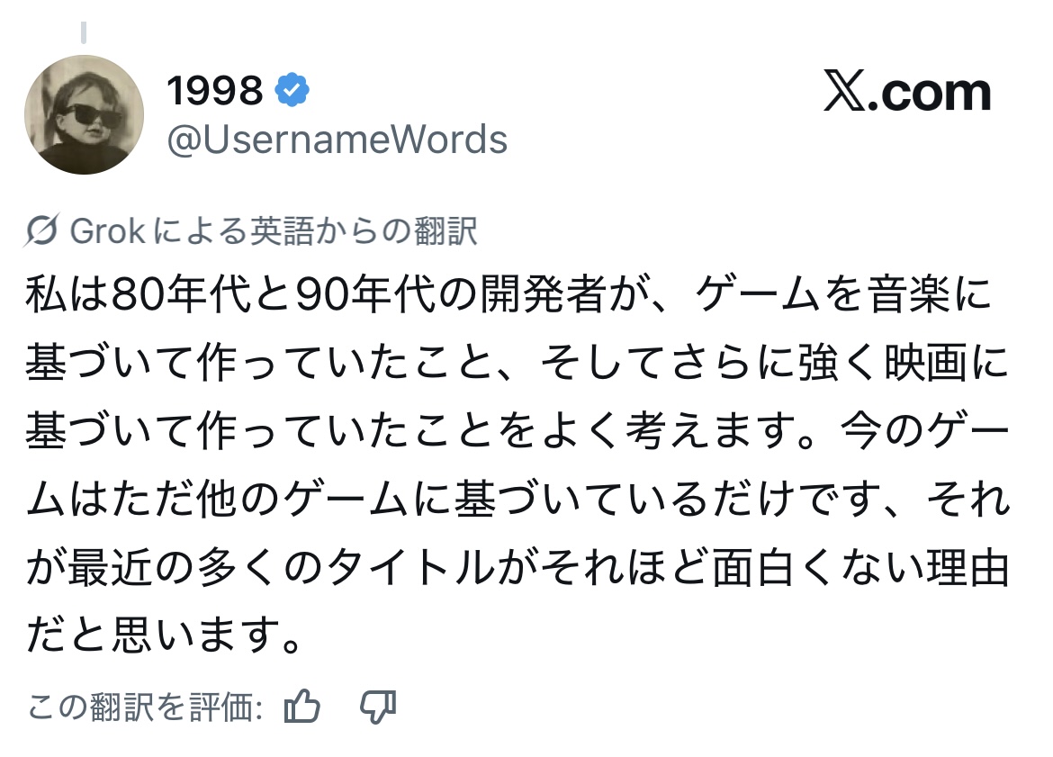 | … | 92826/01/21(水)17:25:22No.1394577188+こういうの真に受けてゲームをしない連中にゲームを作らせればいいんだ!ってブームができてどんどん劣化していったのが今のゲーム業界 |