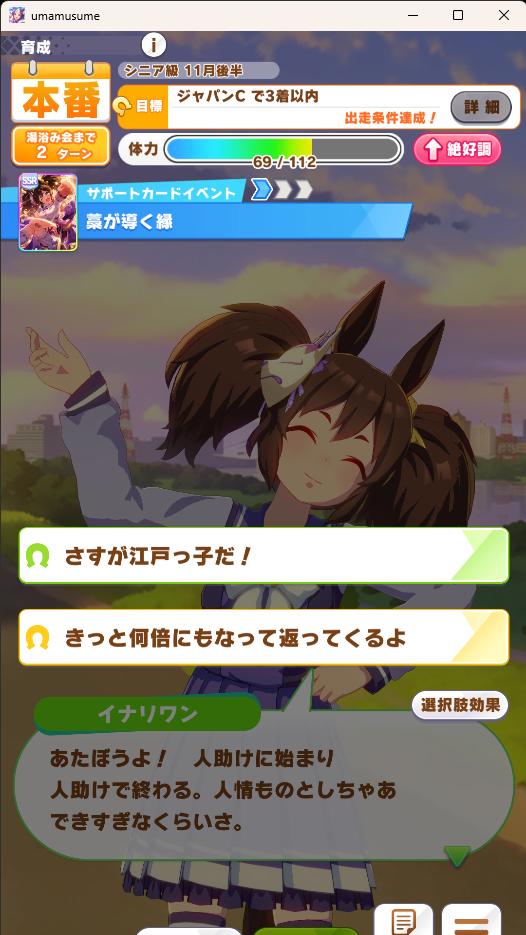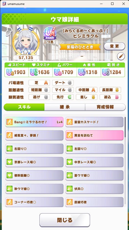 | … | 28126/01/21(水)21:39:33 ID:sf4tTwtANo.1394659320+長距離はサポカの質と加速の質問われるのでどちらも無理そうなら別の脚質で挑むのも手です |