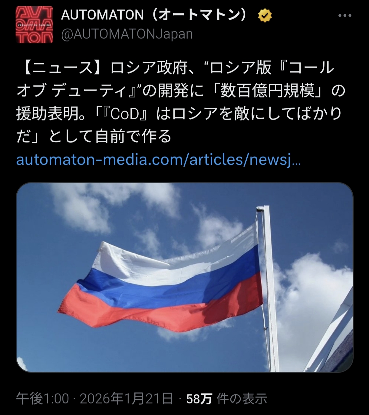 | … | 4326/01/21(水)21:21:04No.1394652050+ロシア舞台のゲームはけっこうある気がするけどCoDじゃないとダメなのか |