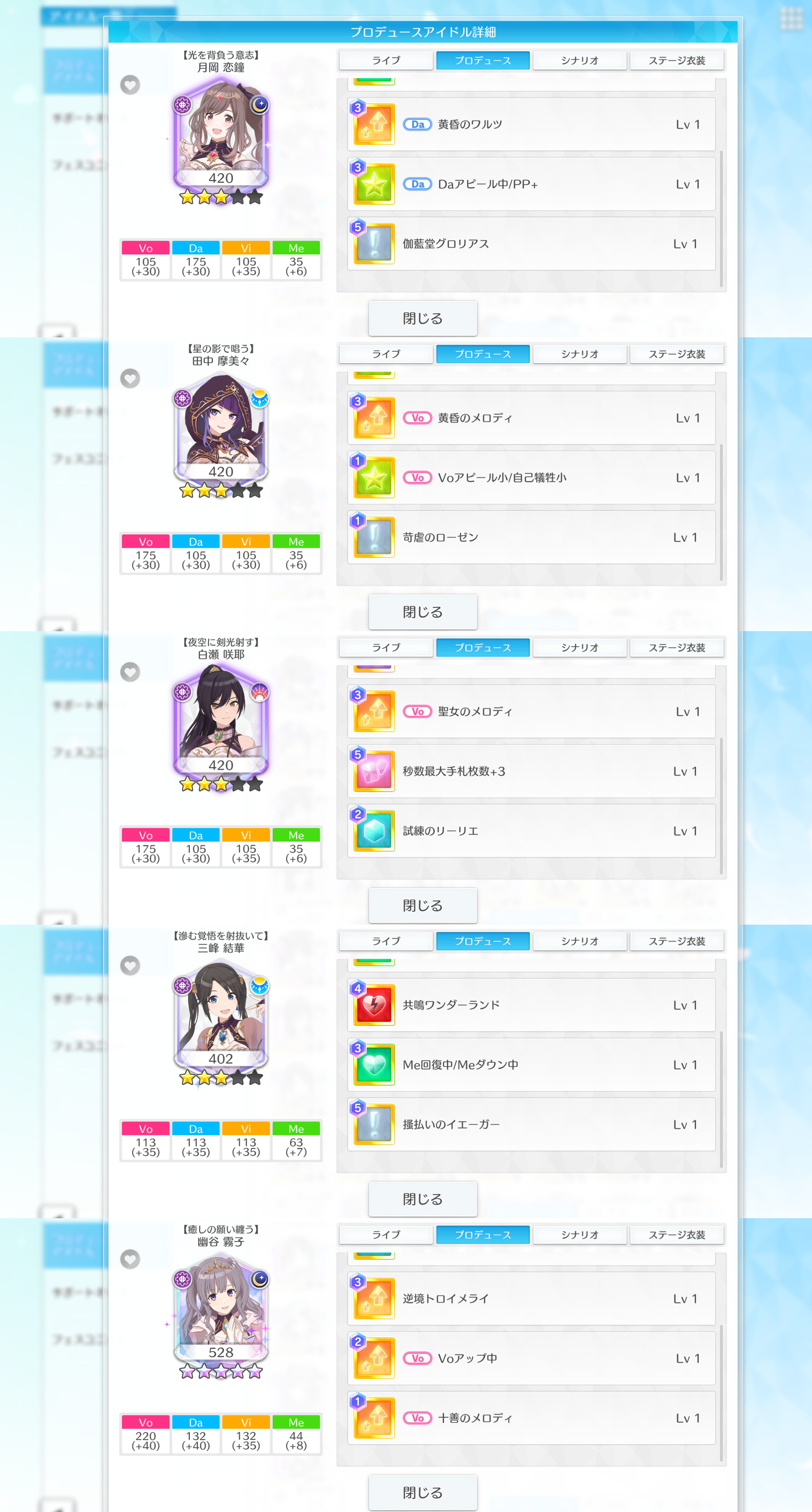 | … | 7926/01/21(水)23:56:41No.1394711684+>音ゲースキルも新しいものがそろそろ欲しい >次のスキル発動にスコア倍率加算するみたいなのとかあったら楽しそう リフラクでステータスのインフレが入ったから終わった後の限定でやばいスキルが出てきそうな気もする |