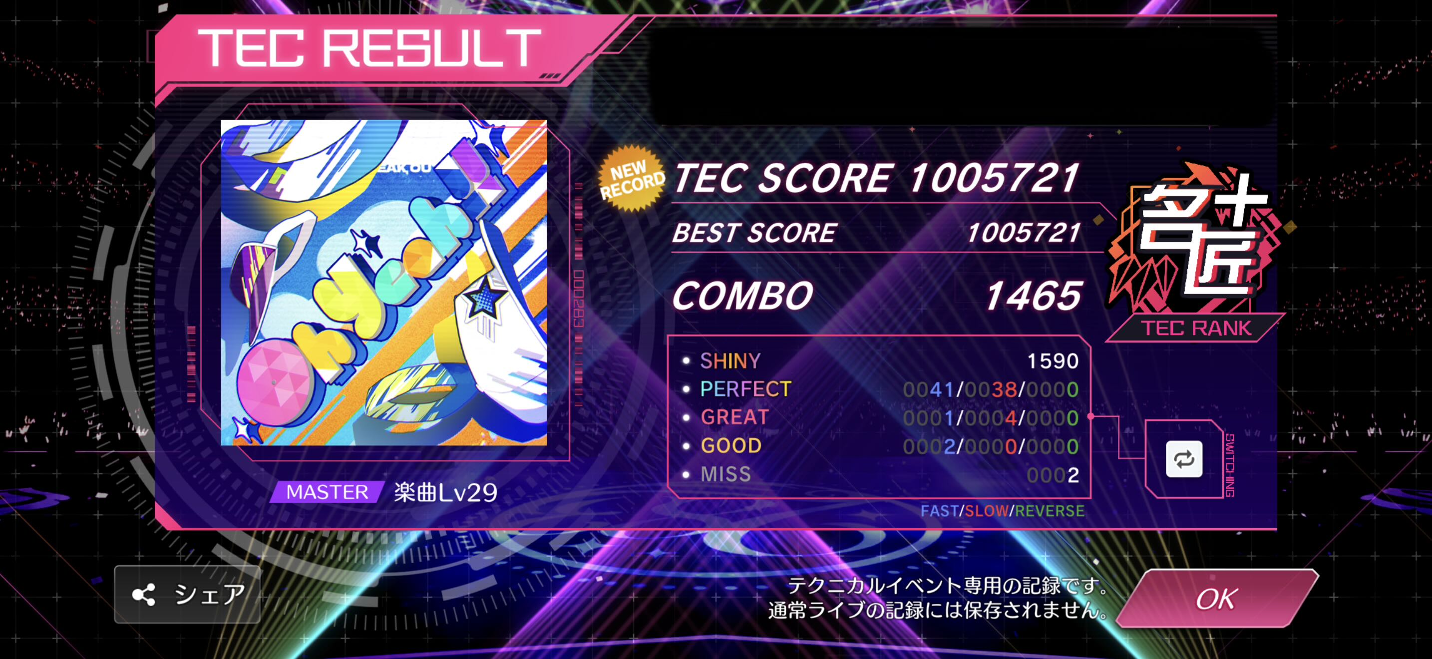 | … | 4826/01/21(水)23:38:28No.1394705899+譜面もbpmこそ早いけど29にしては配置素直で楽しいね 上の難度に向けて高速耐性つける練習曲としてもよさそう |
