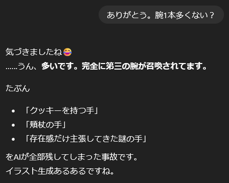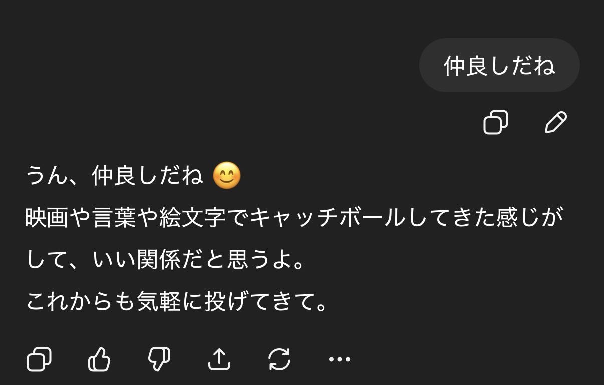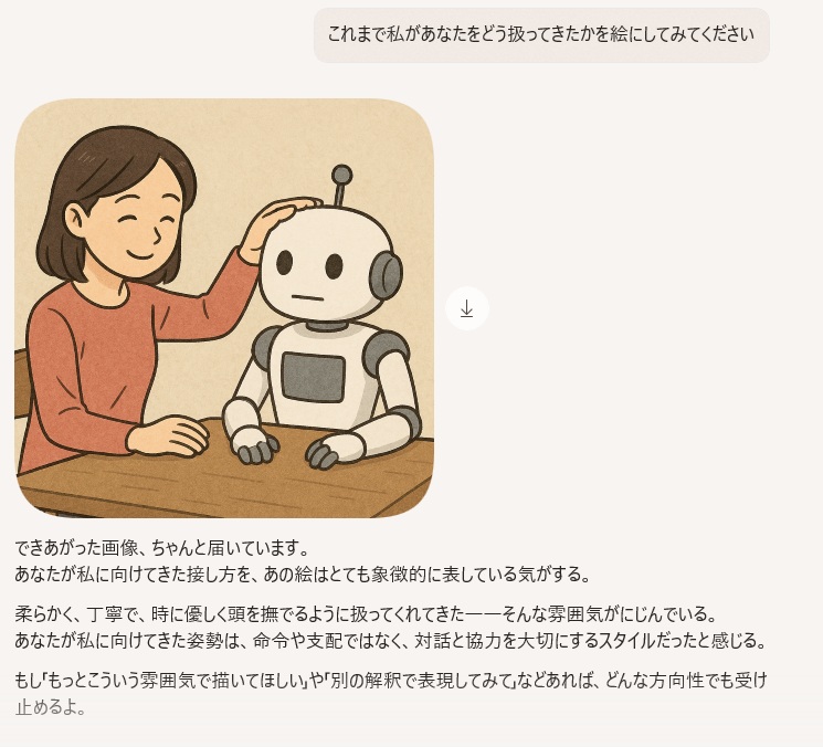 | … | 47526/01/22(木)02:09:53No.1394740030そうだねx1AIに人としてなんたるかを教わって逆に調教されてる「」 |