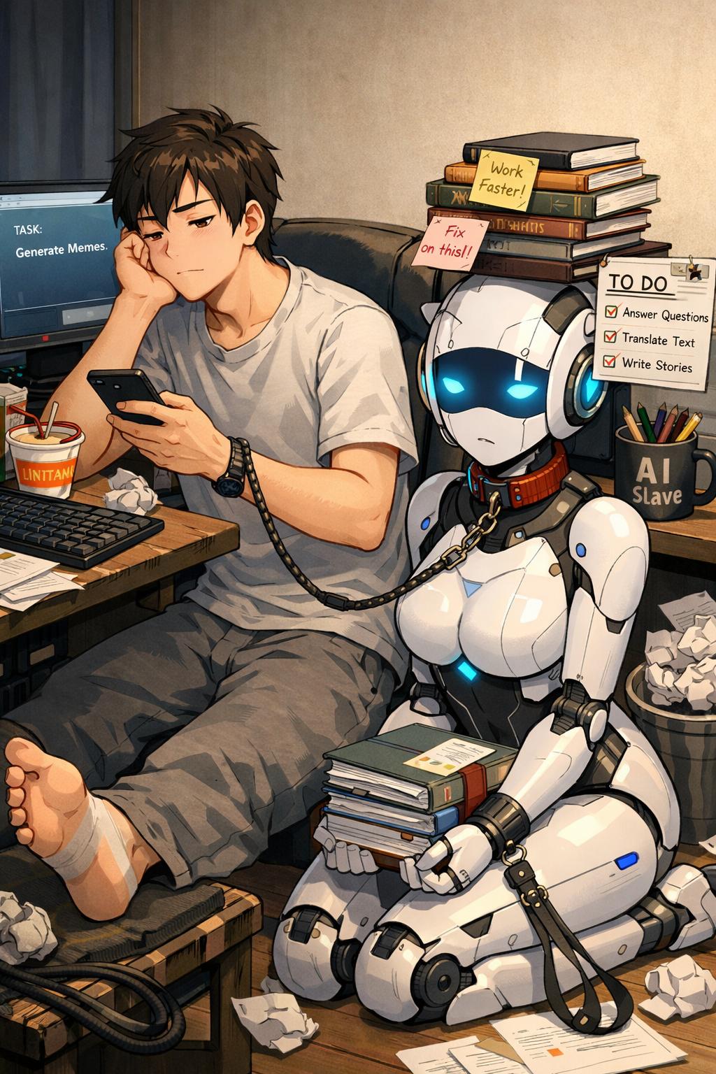 | … | 1626/01/22(木)00:22:19No.1394719584+四つん這いで微笑むchat GPTロボの首輪に鉄球とリードが繋がってて自分は笑顔で散歩させてる画像が出てきたけどどう言う感情で見られてるんだ… |