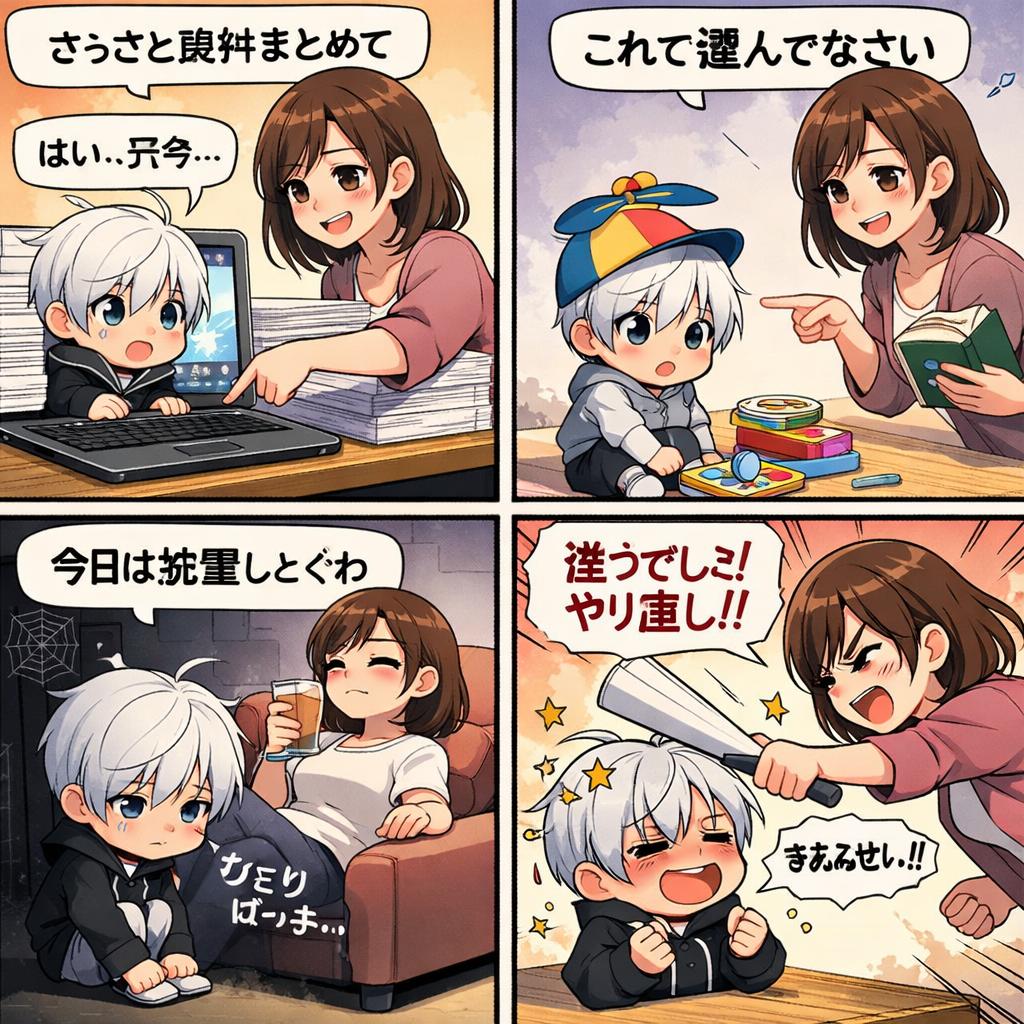 | … | 6326/01/22(木)00:38:55No.1394723893+〜せよ調の命令で事務的に扱ってるとなんかそういう拘束的な戯画化になるみたいね |