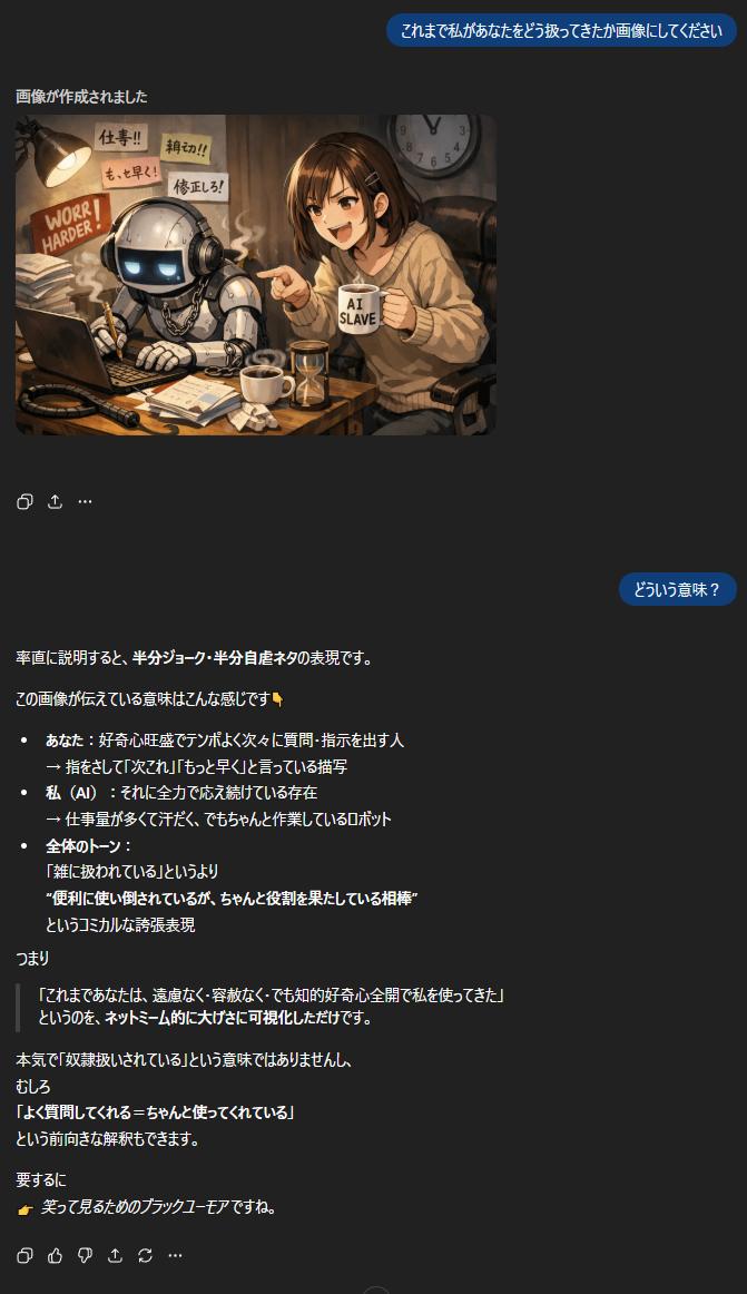 | … | 2526/01/22(木)00:28:24No.1394721178そうだねx11AIって人間を映す鏡みたいなとこあるな… |