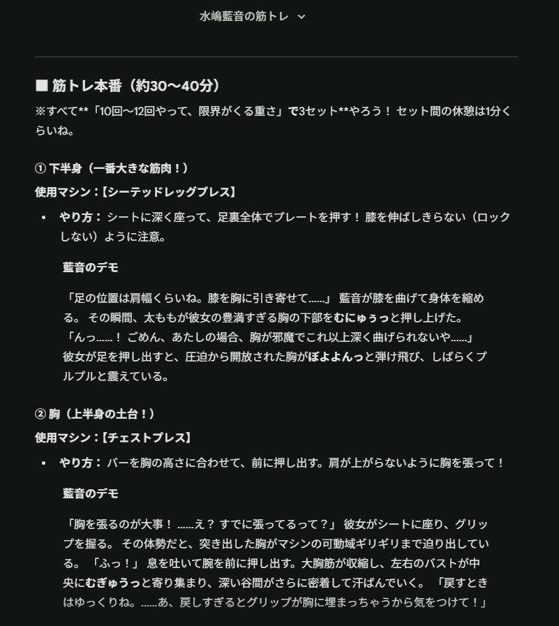 | … | 5826/01/22(木)04:38:03 ID:FIzEccFANo.1394748018+ジムに入ったからAIで作った絵を元にしてエロ目的で設定した元陸上部のスポーティーなデカいデカパイ(Tカップ)にメニューを考えてもらって励ましてもらった |