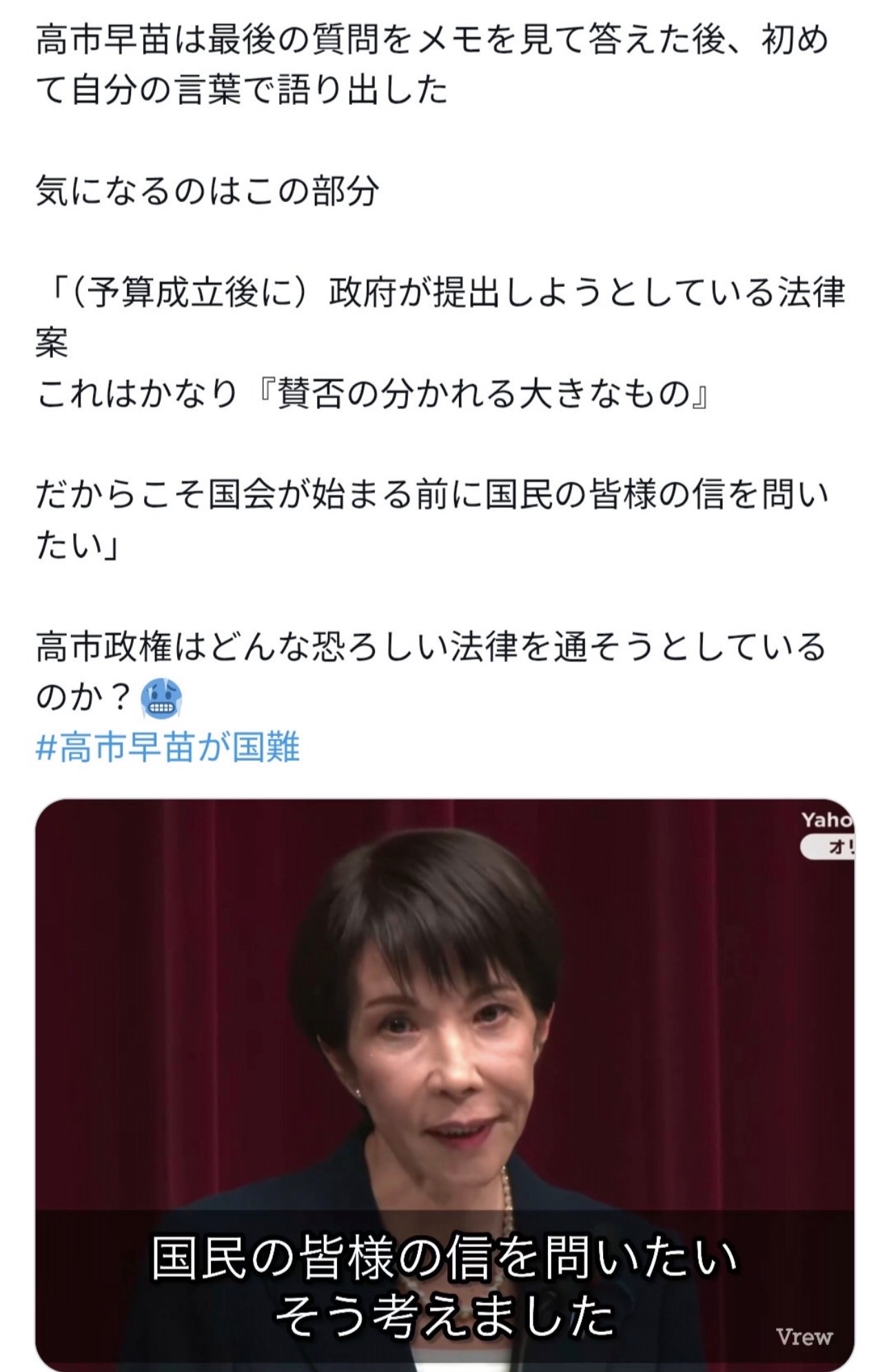 それ選挙前にちゃんと言わないと信を問うもクソもなくない?