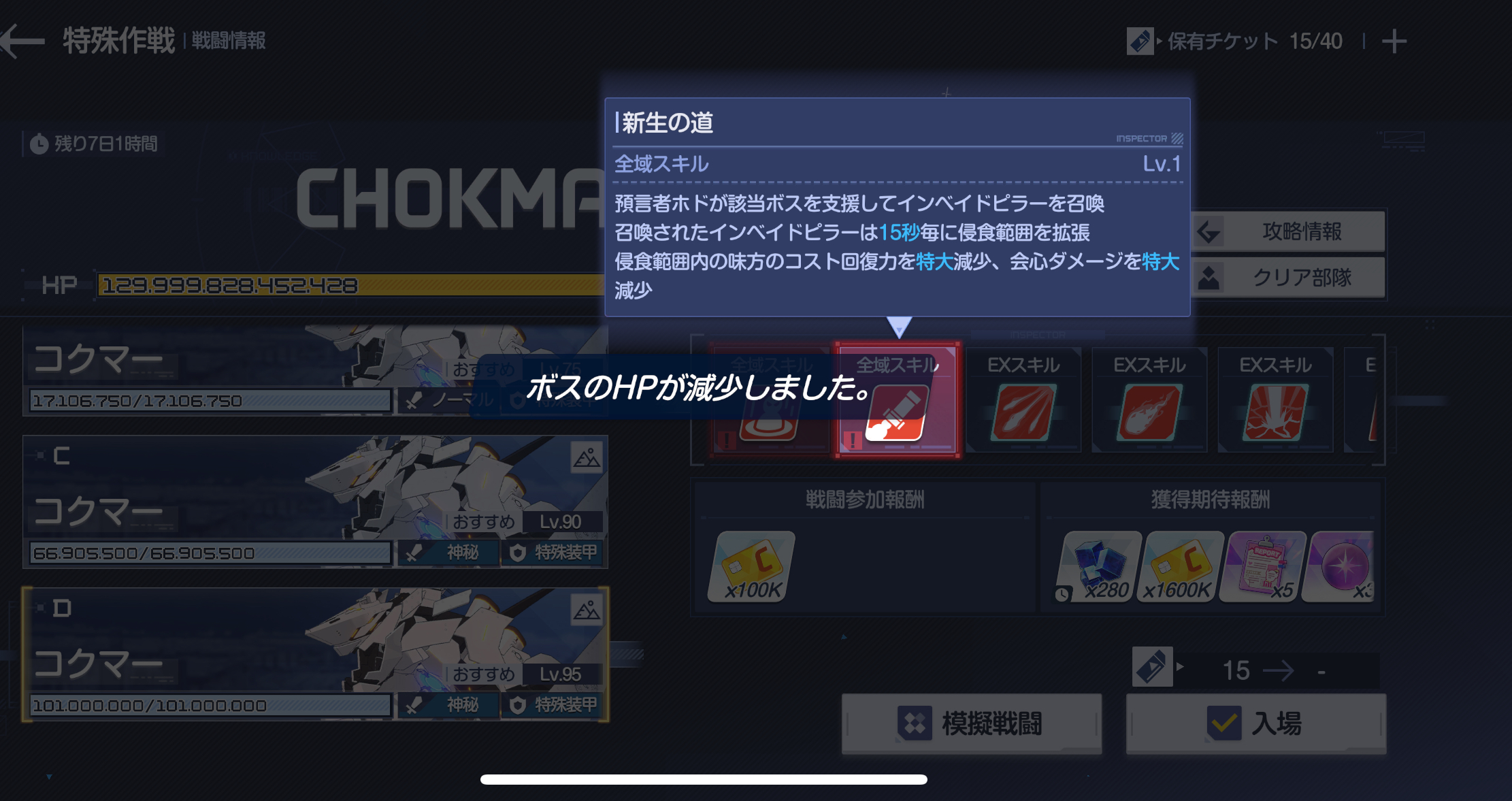 | … | 4926/01/22(木)08:27:22No.1394761981+ここから最終戦→イベントを挟んだら次のボスは11時台開放になるのかな |