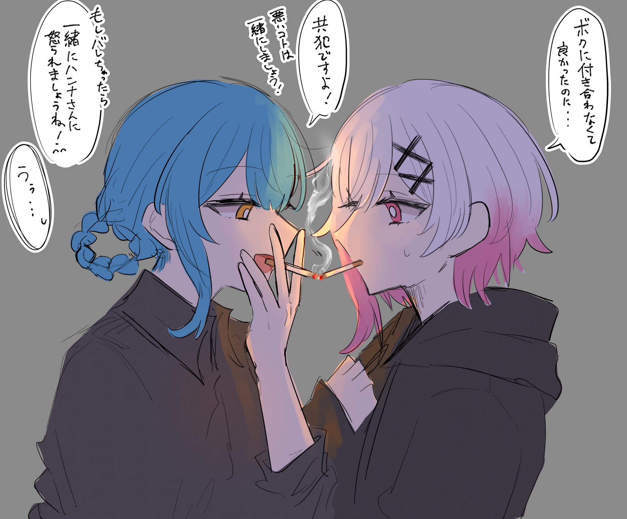 | … | 5126/01/22(木)17:46:25No.1394872157+>自分も吸ってる癖にヤニくさいエマに大興奮するヒロ |