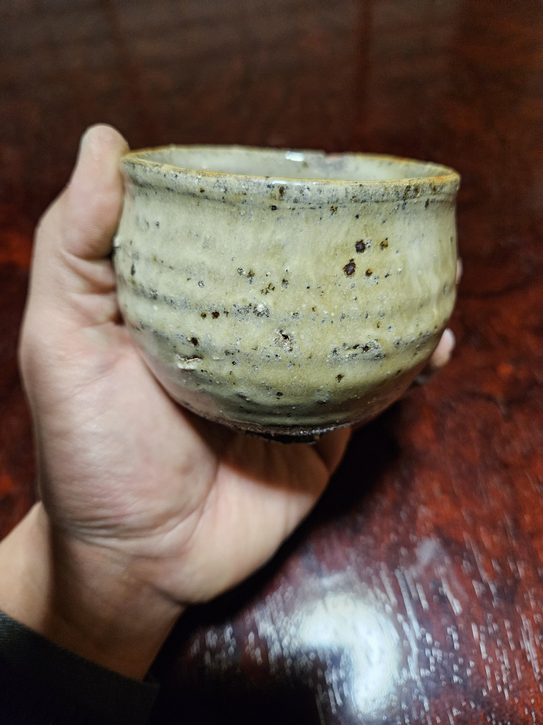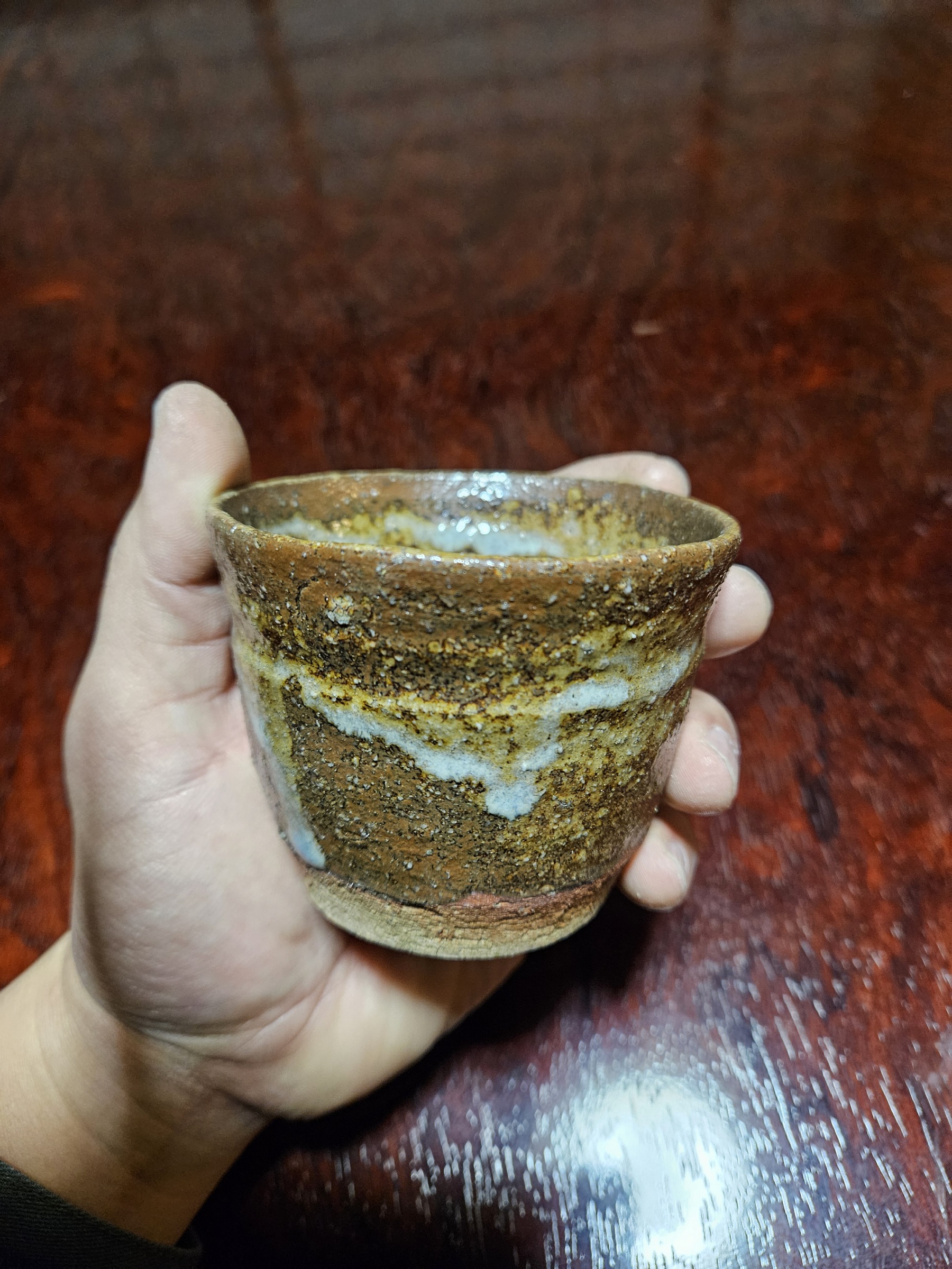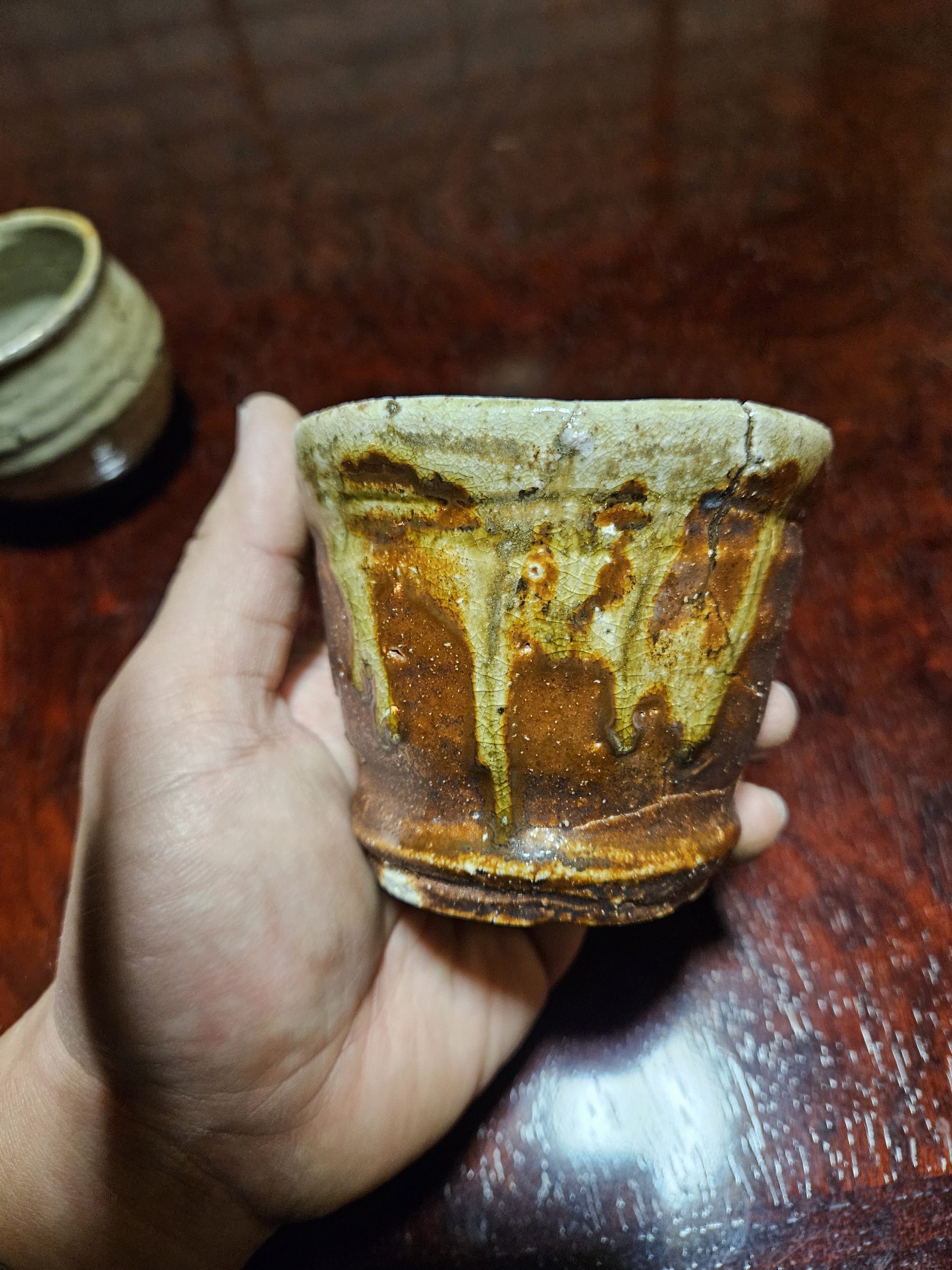 落ち着いた色調ながらダイナミックにたれた釉薬の模様があまりに美しくて家で眺めてたら涙が出てきた
