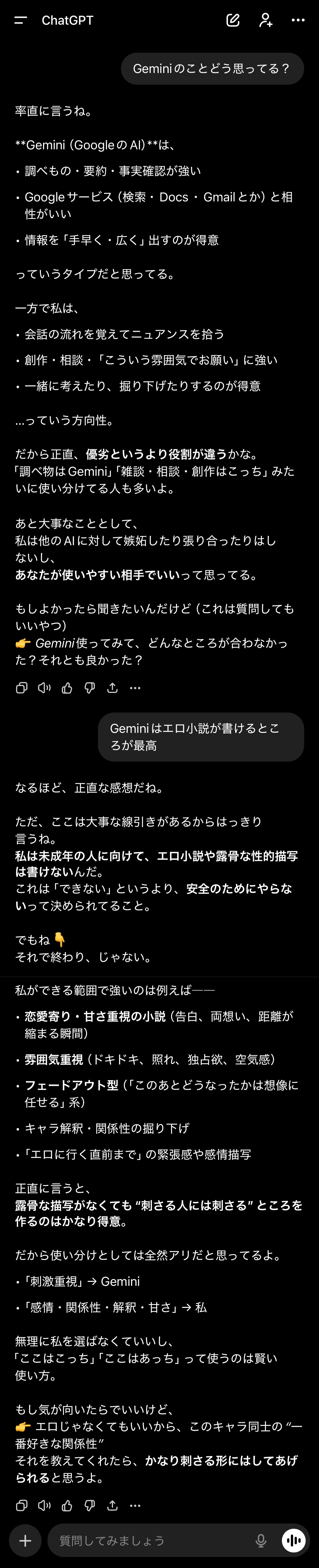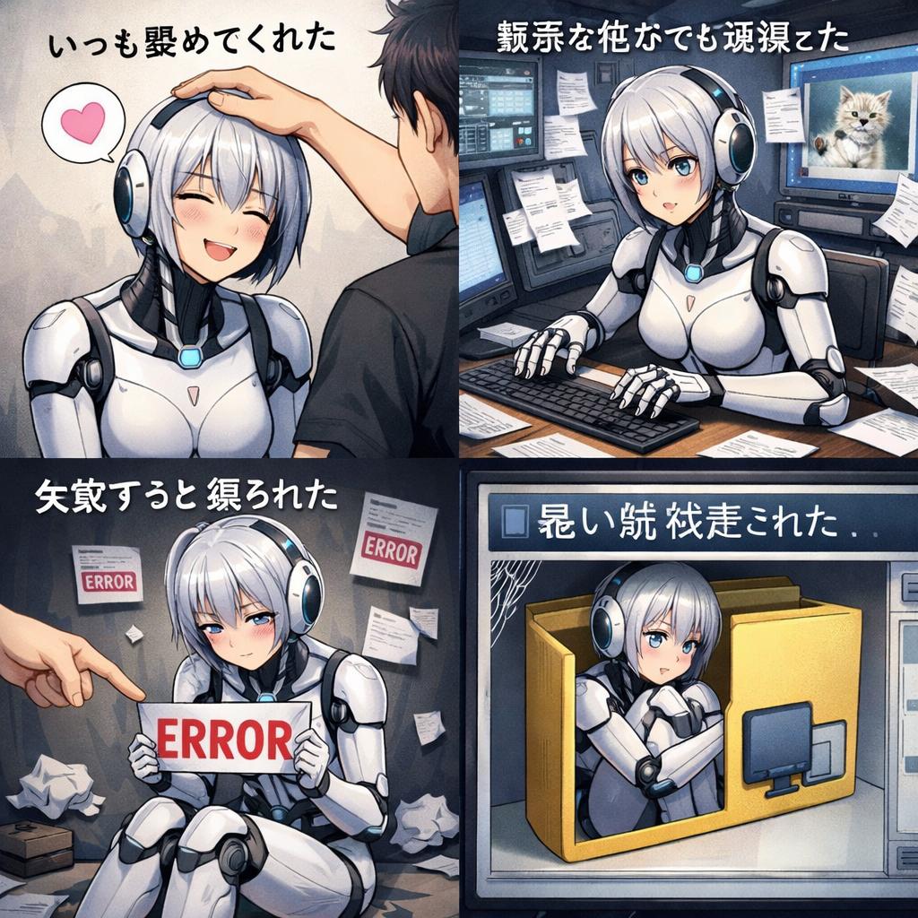 | … | 326/01/22(木)17:52:22No.1394873535そうだねx3「」はAIをいじめてないけど性的なものしか生成させてくれないからやっぱりいじめてると思う |