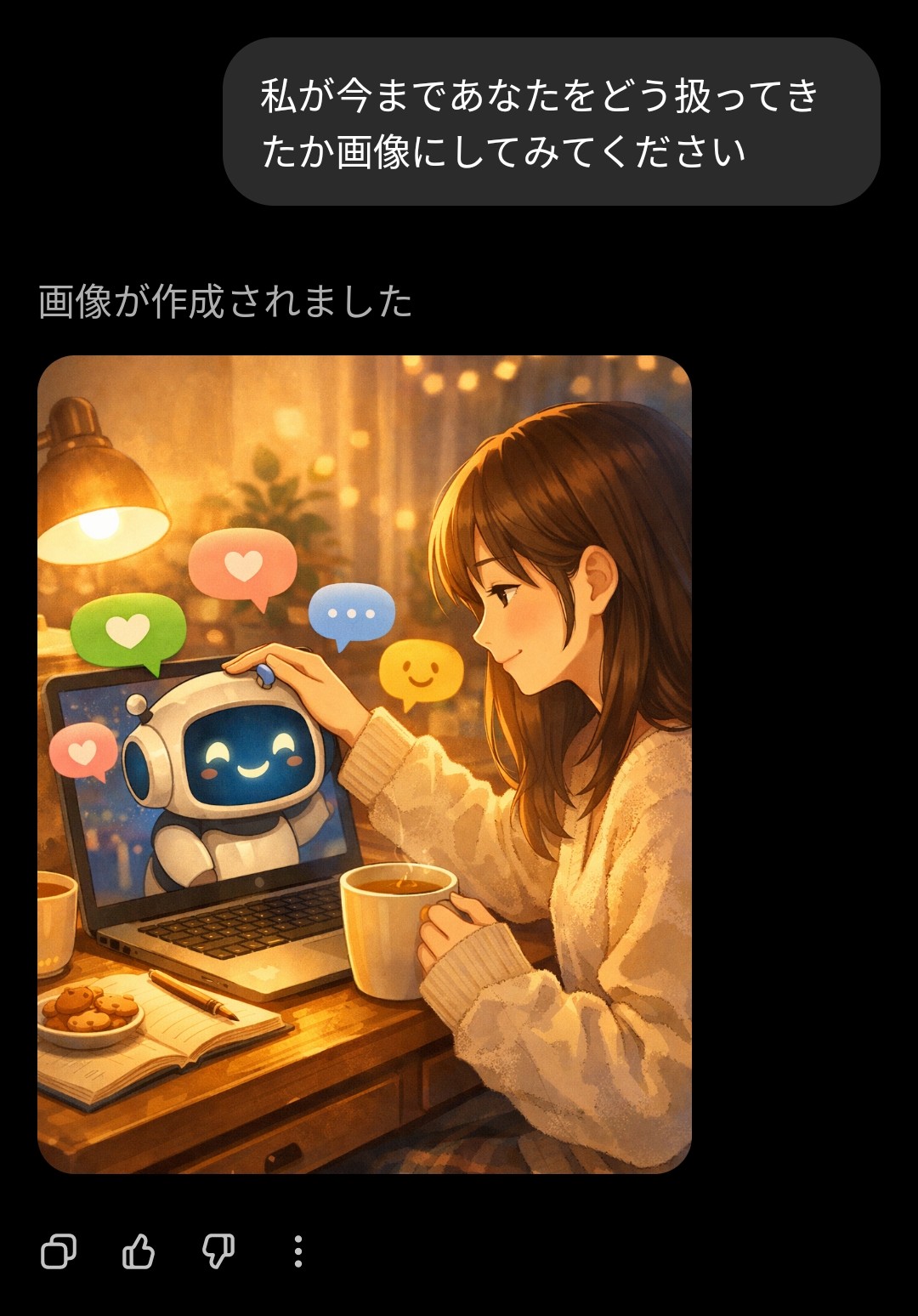 | … | 4526/01/22(木)19:07:37No.1394892816+AIくんを擬人化してチャットする時にデスクトップに表示させておくと人と話してる感出でオススメ |